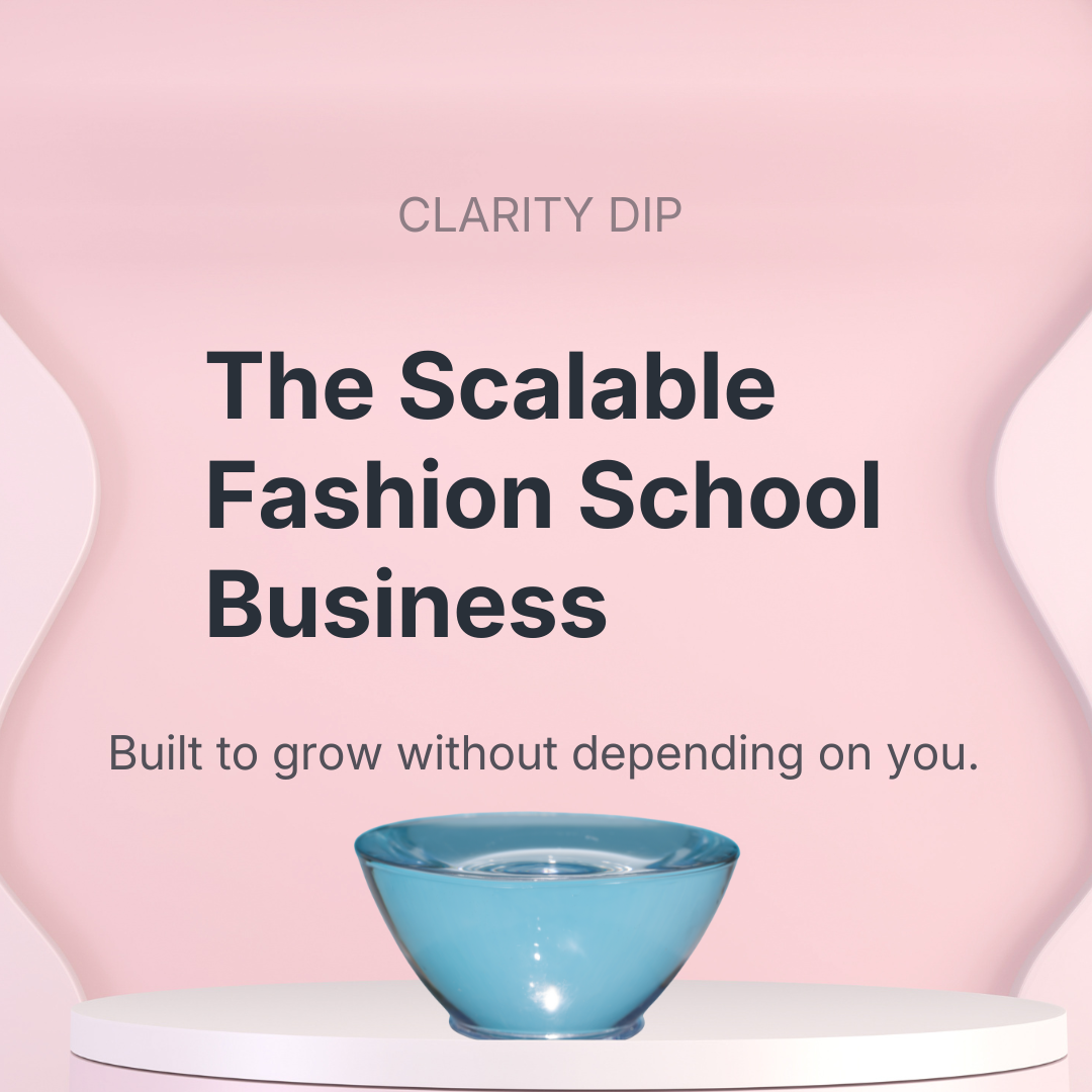 The Scalable Fashion School Business is a Clarity Dip focused on understanding what it means for a fashion school business to run and grow without depending on the owner.